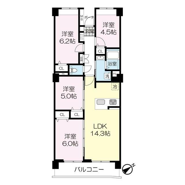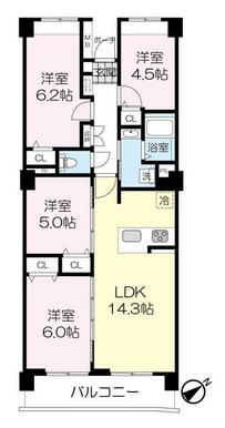 | 間取り | 4LDK(LDK14.3・洋室6.2・洋室6・洋室5・洋室4.5) | 主要採光面 | - |