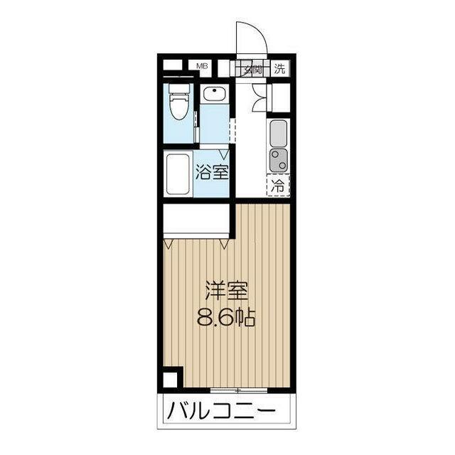 | 間取り | 1K(洋室8.6・K2) | 主要採光面 | 南 |